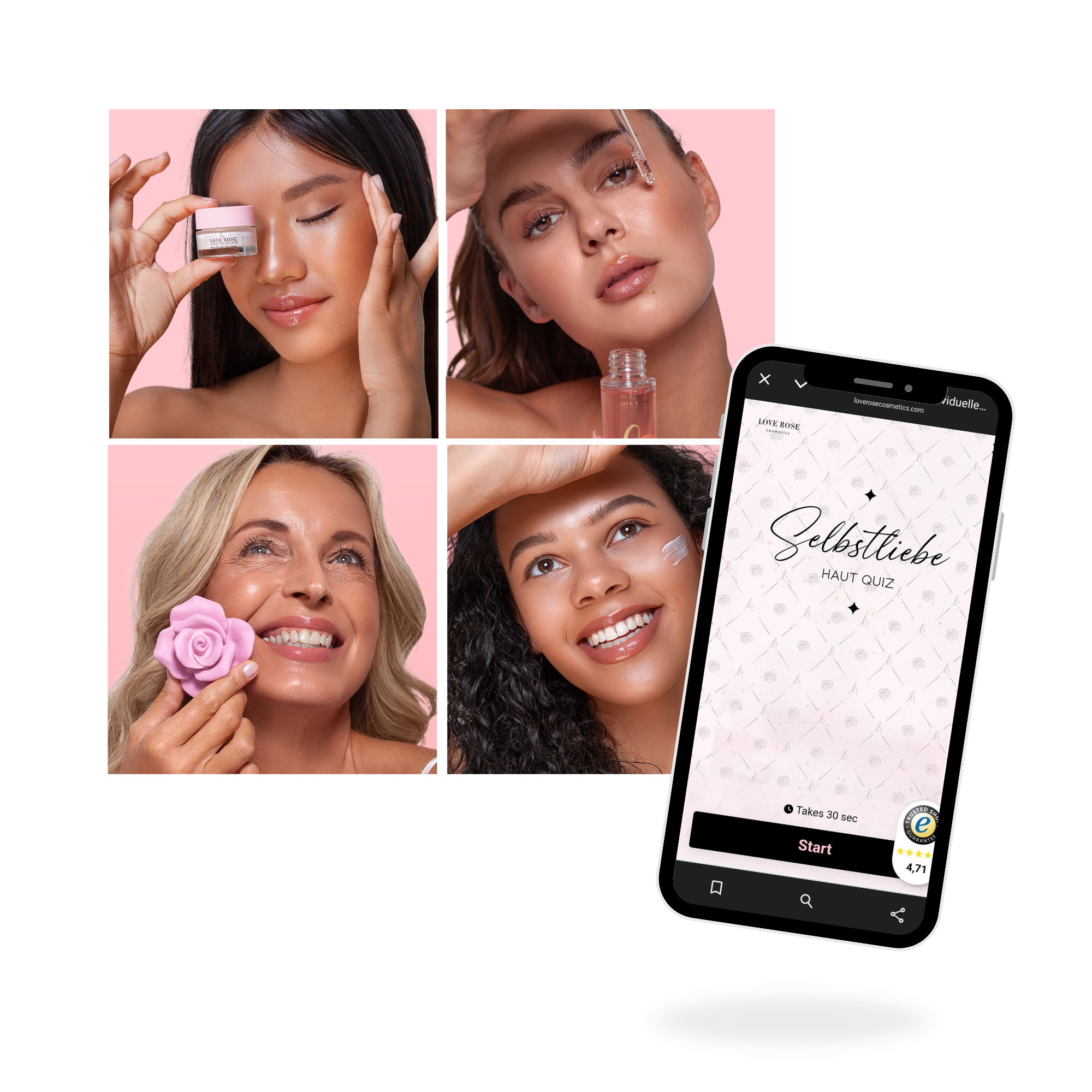 Erfahre, welche Pflegeprodukte von Love Rose Cosmetics perfekt zu deinem Hauttyp passen. Unser Quiz analysiert deine Hautbedürfnisse und empfiehlt maßgeschneiderte Lösungen für eine strahlende Haut.